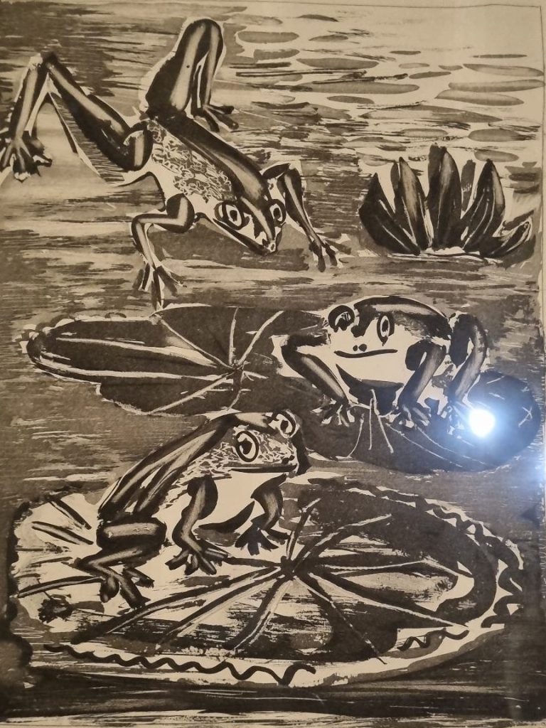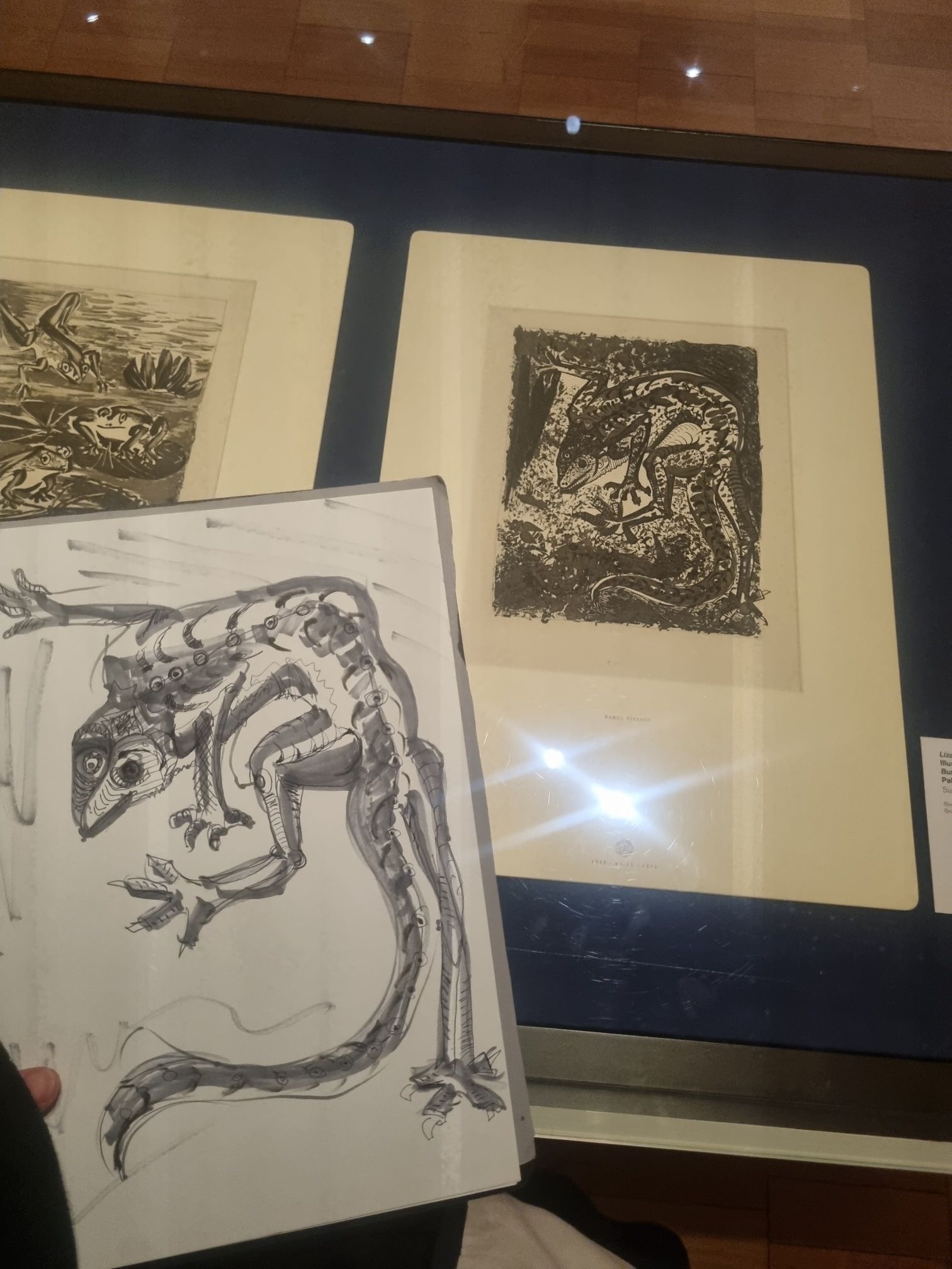 Today I happened to snatch a ticket for a exhibition in British museum called Picasso the Printmaker – and as the name suggest it was dedicated purely to Picassos prints. I did not know beforehand that he done so many prints and with many different techniques. The lizard and the frogiies caught my eye the most as if this wasn’t labelled I would not have guessed this was done by Picasso. Well obviously I had to draw it. Turns out drawing frogs is harder than is seams but the lizard turned out good.