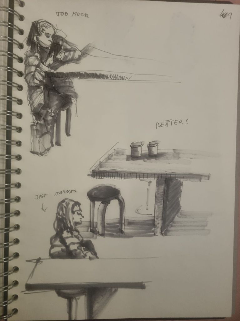 Also , I drew this in the museum cafe as I was having a cofee break and I just wanted to experiment with markers a bit – spoiler allert my marker dryed out 😦