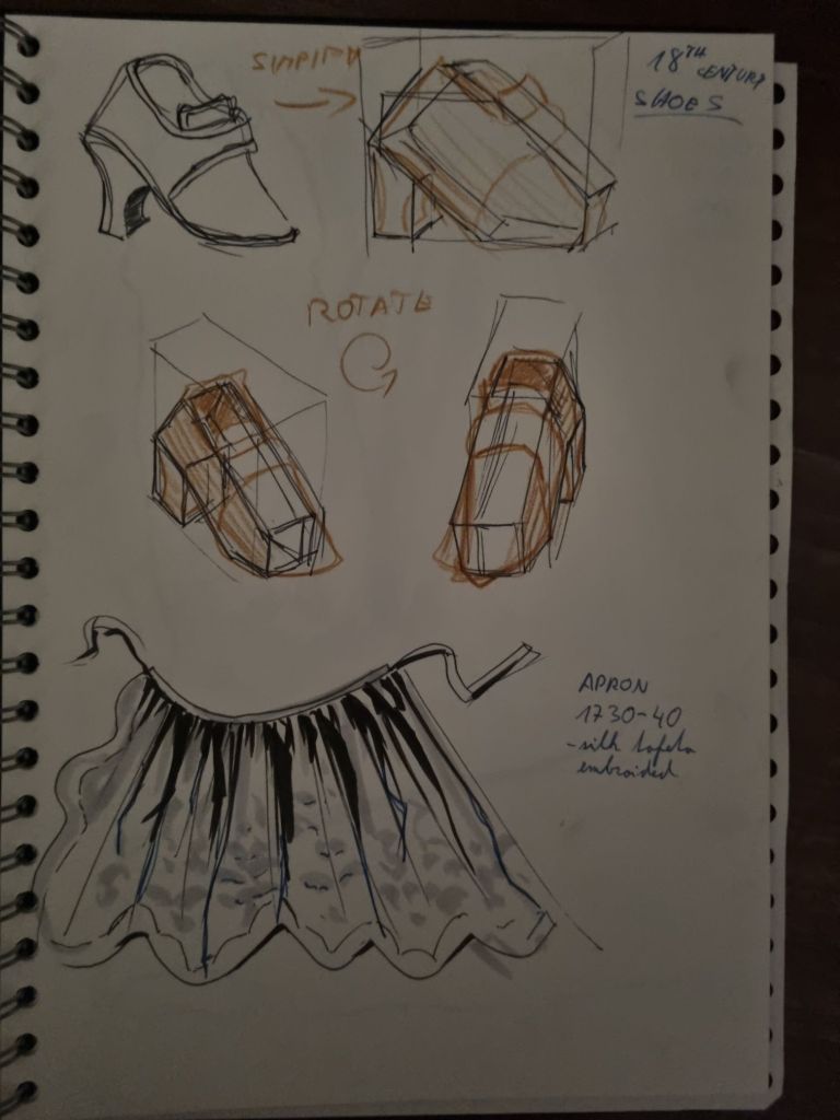Today I had a straight goal – go to VaA and draw historical dresses focusing on the diferent shapes and siluets.